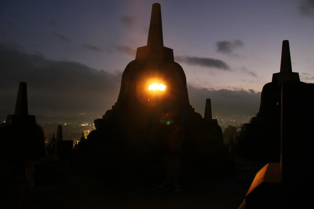 I certainly didn’t have any spiritual epiphanies when dawn broke through the clouds, nor did I feel Buddha’s warmth overwhelm me; I’m quite sure the only way to achieve truly authentic experience would be to find a time machine and travel to the year 875 and help build the damn thing for 75 years. Failing that, being an actual Buddhist would suffice. Few tourists are.