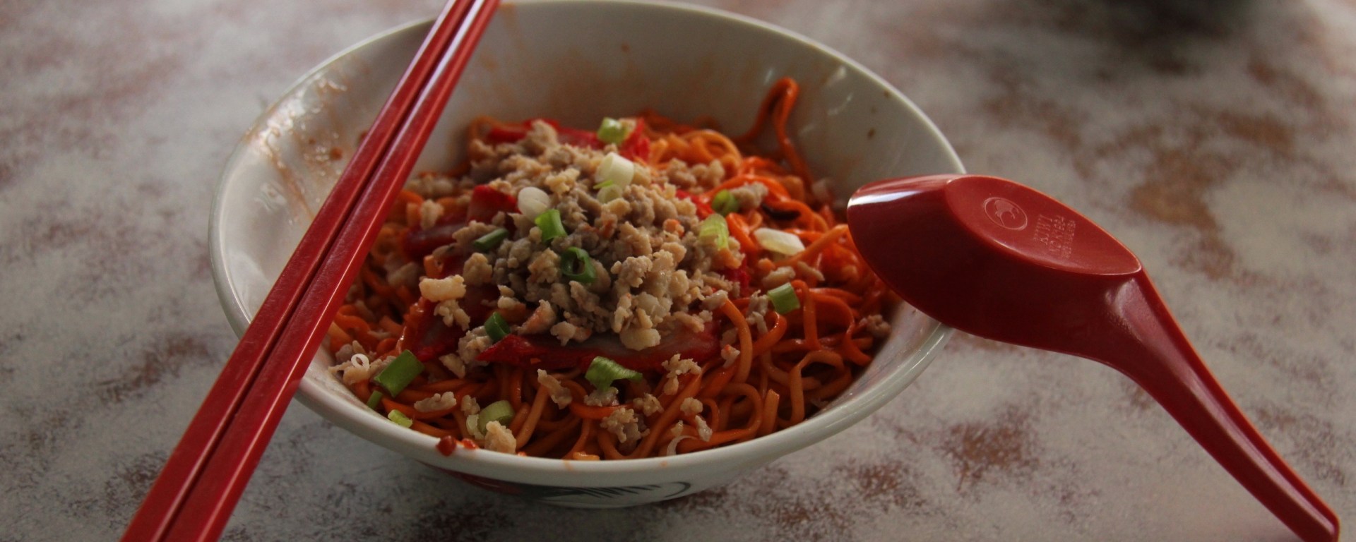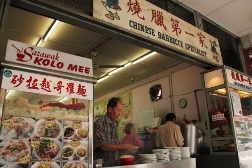 The second-most vaunted dish here is kolo mee, a greasy, anything-but-healthy pork-noodle combo. We got ours from a “Chinese barbecue specialist” who looked every bit the part, flash-frying noodles in a pan with two varieties of pork—minced and sliced—before topping the dish off with green onions and red peppers. The veggie intake could have probably been higher, and I’m told unhealthy amounts of MSG are essential for the dish’s savoury flavour, but for $1, I won’t argue.
