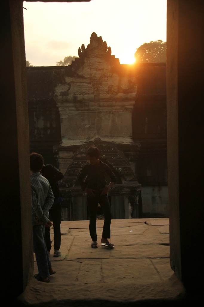THE ANGKOR TEMPLE COMPLEX sees around 1,000 visitors in a day, many of whom swarm the western gate at 5:30 a.m. to wait for the 6 o’clock sunrise. I did not know this before we joined them. We rented bikes the night before and left our homestay pedaling at 5 o’clock, following the line of tuk-tuks and stopping only for a breakfast baguette sandwich along the way. We were, on some level, trying to recapture the magic of witnessing the exclusive sunrise of Indonesia’s Borobudur. This is, of course, impossible. What made Borobudur lovely was its Buddhist tranquility; what defines Angkor Wat are the crowds.