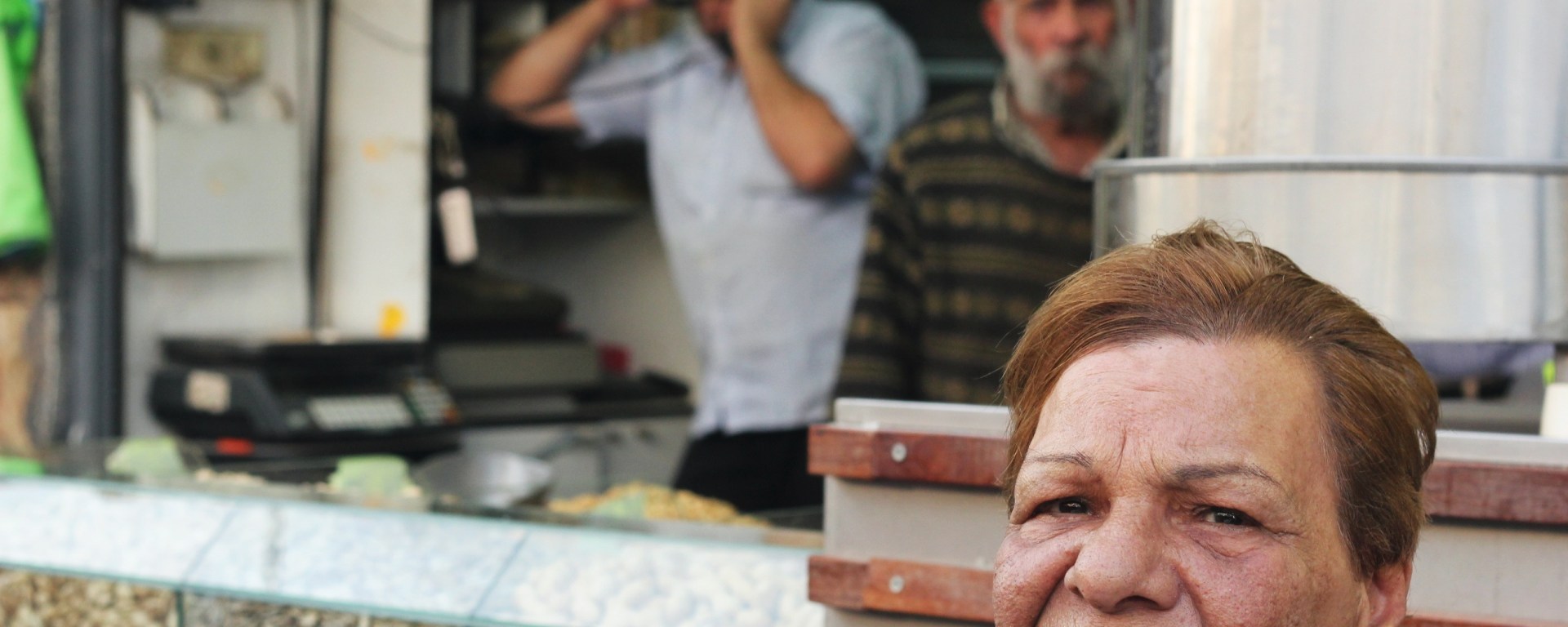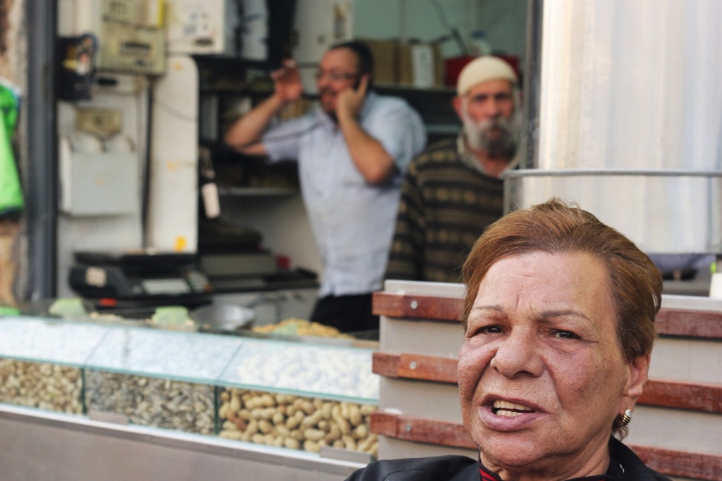 A middle-aged woman with a fat nose and short hair sat with her plump blonde friend at a cafe in The Shuk in Jerusalem. She spoke a grandmother’s Hebrew (that is, slowly and repetitively) which meant I could catch some of what she was saying. “Where are all my friends today?” she asked the woman across from her, though it sounded like soliloquy. “Usually I see so many. Today, I haven’t seen anyone.” V and I munched on our rugelach and sipped an ice coffee. “You want a coffee?” she asked her friend, who had been saying very little. The quiet woman told her not to worry. “It’s fine,” the woman persisted. “Give me three shekels. It’s 10, but they’ll give it to me for three.” A skinny young man dressed in black walked past and she grabbed his wrist, drawing him near. She whispered to him with the confidence assumed by many Jewish mothers: “Give me a coffee for five shekels, please.” The boy looked queerly at her and walked away, and did not bring her a coffee. She and her friend left a few minutes later.