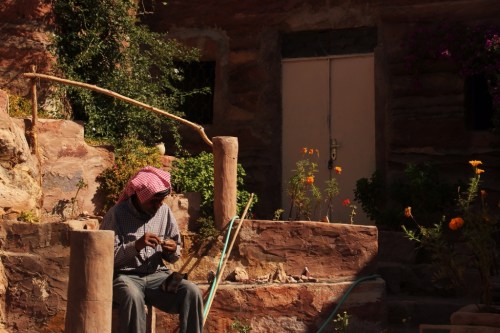 Speak to any Bedouin in Petra and you will inevitably be asked, “How long in Petra?” And when you tell them only one day, each will shake his head sadly, look down, and say, “Not enough time.” This, coming from men who have never known life anywhere else: we asked one man by the name of Bdul Mofleh, who runs a tea and coffee shop out of his cave on a quiet peak above the local museum, how long the cave had been in his family. He puffed his cigarette and squinted out at the mountains. “Long time,” he said. “I was born in those caves there.” V and I, in tandem, took two seconds to realise what he had said. “You were… born there?” we repeated, incredulously. He grinned. He has no brothers or sisters: “It’s better,” he claimed. “Quiet. Not much people. Now, it’s all for me.” Nawwaf, our host in Jordan, later told us that Bdul caused a scandal back in the ’70s by being the first Bedouin in Petra to marry a foreigner, a Swiss woman. They had a daughter, and he tried to move to Switzerland with them, but the culture shock was overwhelming, so he returned, sulky, to his desert, divorced and alone.