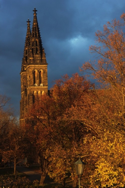 Soon the sun was to set behind the hill, so I decided to make use of those last sunlit moments by strolling through the grounds of Vyšehrad, a quieter castle complex benchmarked by the towering gothic Basilica of St. Peter and St. Paul, which is powerful but somehow less impressive than Prague Castle’s Basilica of St. Vitus (I guess it’s just smaller?). The basilica and it’s surrounding orange-roofed houses on that grassy hill caught the direct sunlight so beautifully against the dark gray clouds overhead that the colours seemed something out of an impressionist painting, and the few of us there stood for as long as we could in silent awe.