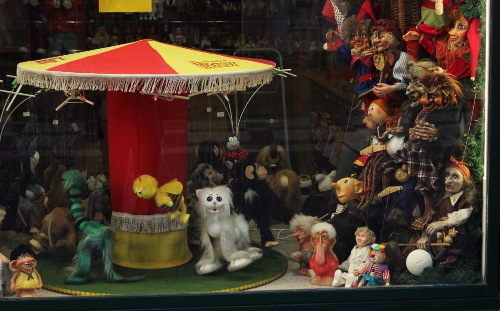 Most cathedrals and synagogues cost money to enter, and I found delving into my religious history a bit too costly for the time, so I opted instead to escape the Old City and, in the words of my host here, “Go for a wander.” The small shops are charming and silly. By the river, south of the inexplicably crowded Charles Bridge, there is a kitschy medieval souvenir shop run by predictably bored employees with graphic tees and scowls who sell things like skull earrings, axe keychains, dulled broadswords and thick gothic cross necklaces, purportedly in theme in Prague’s eerie gothic style. Down the street you can find a few homemade arts and crafts stores operated by kinder, older women who speak much less English and spend their days surrounded by knitted teddy bears and children’s books. I later stopped for a latte and slice of jablečny, which the woman said was apple pie, but is much heavier (then again, all food is heavier here) and is filled with chopped nuts and over-plumped raisins.