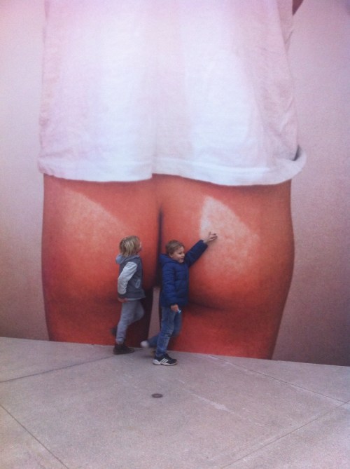 Ms. Lucas had created two large statues of penises, two gold-plated pumpkins that looked like penises, and two humongous square photographs of herself at a younger age, one which showed her nipples through a cut-up shirt, and another of her backside, revealing her bare bum and a slogan on her shirt: “COMPLETE ARSEHOLE.” “I hope you will return tomorrow, when the exhibit is finished,” the curator announced to the crowd in the lobby. My friend who had invited me, an art history teacher, leaned in and whispered, “That’s the hens.” Apparently the Viennese group hosting Ms. Lucas has created a large henhouse in the space, and everyone is excited that the hens should fly up over the walls, lay eggs everywhere and shit all over the art.