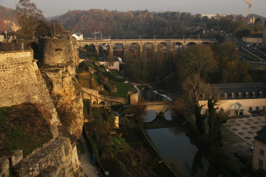 All this social teenage conformity, though, flies in the face of The City itself. Built above and between precarious cliffs and huge swooping valleys, the Old City of Luxembourg is without question one of the most beautiful urbanised parts of the world. Everything bends and flies: massive arches support stone bridges over gaping valleys, connected by roads that curve along mountain ridges, the hazy sight of cathedral and castle spires off in the distance and below, defining a horizon otherwise lined with a dense collection of pine and fir. The grandiose town squares, empty in these chilly December afternoons. The strung-up holiday lights adorning the stone alleyways. The ruins of a castle built 1,000 years ago, popping out the side of a cliff.