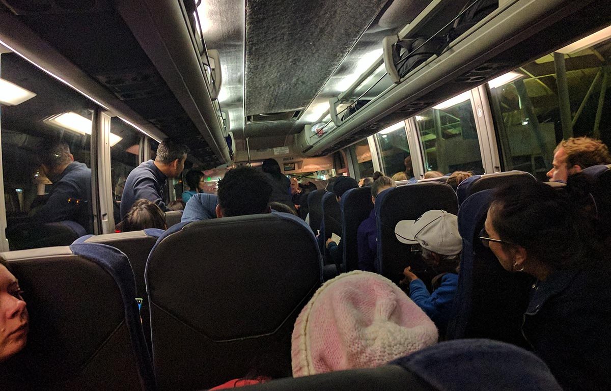 “All right, I guess we’re doing it this way,” our driver announced. “I’m handing out all the tickets. When I call your name, raise your hand. Whoever doesn’t have a ticket has to get off the bus.”