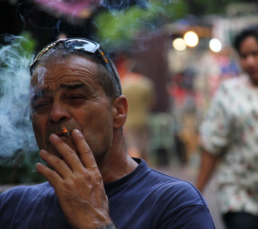 THE MAN SITTING NEXT TO ME is trying to swindle a bracelet for free. The woman in front of him holds out a few colours, and he chooses black. He is muscular and hasn’t shaved in a few days, with green cargo shorts and a loose, sweaty v-neck. She looks like a rainbow of Thai kitsch, from goofy hat to floor-length skirt. He changes his … Continue reading Notes From a Thai Cafe: Watching the Man Who Won’t Have Sex with this Waitress